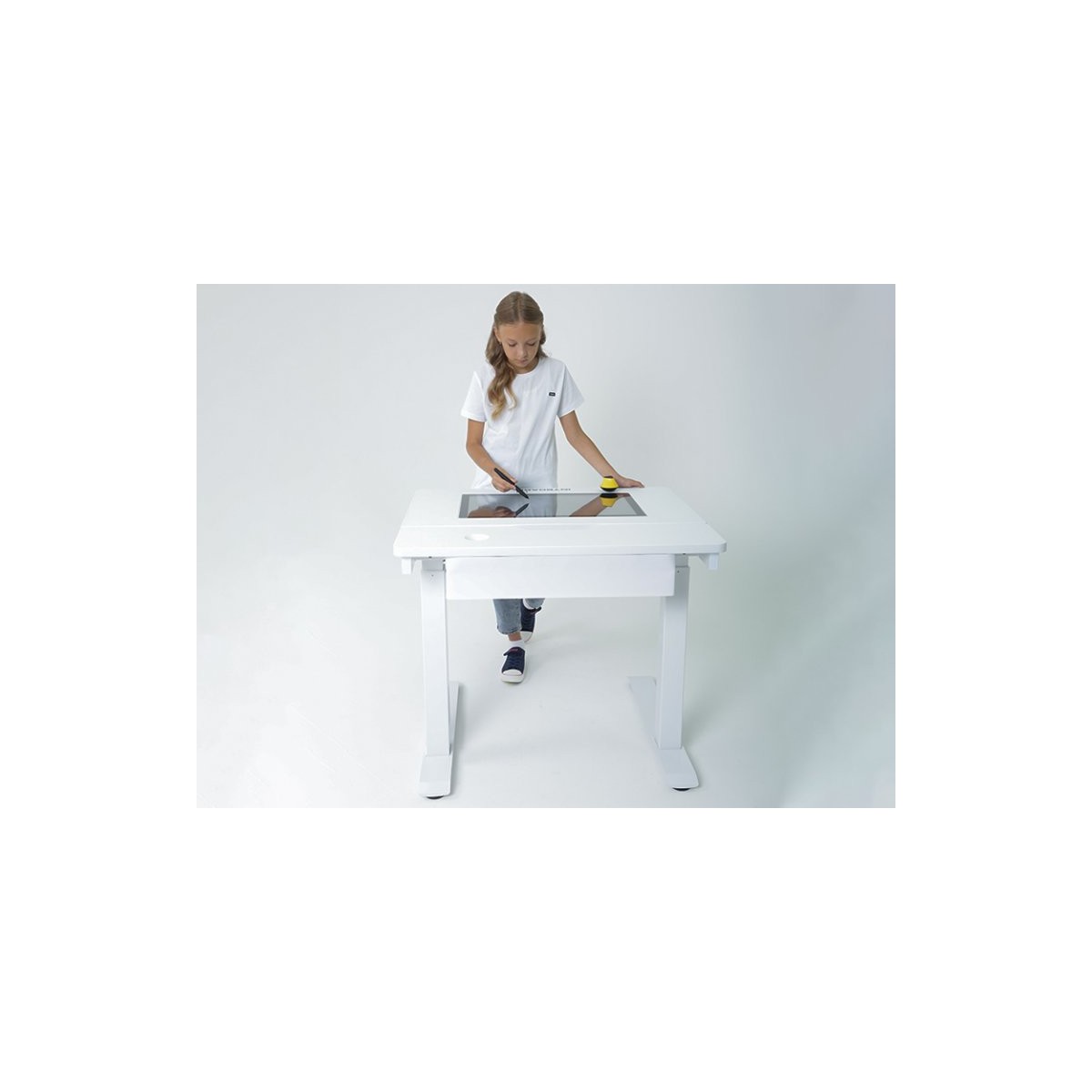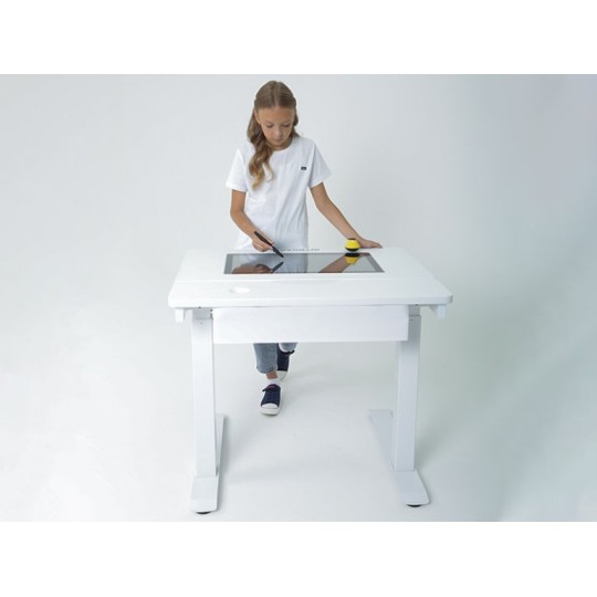 Z powodzeniem może zastąpić tradycyjne biurko szkolne – zarówno w klasie, jak i w domu. Wyposażone jest w zintegrowany ekran dotykowy o przekątnej 24″ lub 32″, działający w systemie Android lub Windows. Obsługuje jednocześnie do 10 punktów dotyku, co pozwala na pracę indywidualną lub grupową.