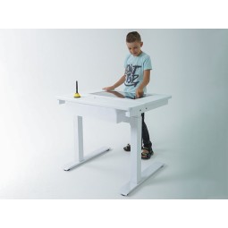 Ekran wykonany ze szkła hartowanego gwarantuje bezpieczeństwo i wysoką jakość obrazu. Regulacja wysokości oraz kąta nachylenia (0°–70°) umożliwia dopasowanie biurka do wzrostu dziecka i jego indywidualnych potrzeb – także w przypadku dzieci o specjalnych wymaganiach edukacyjnych.