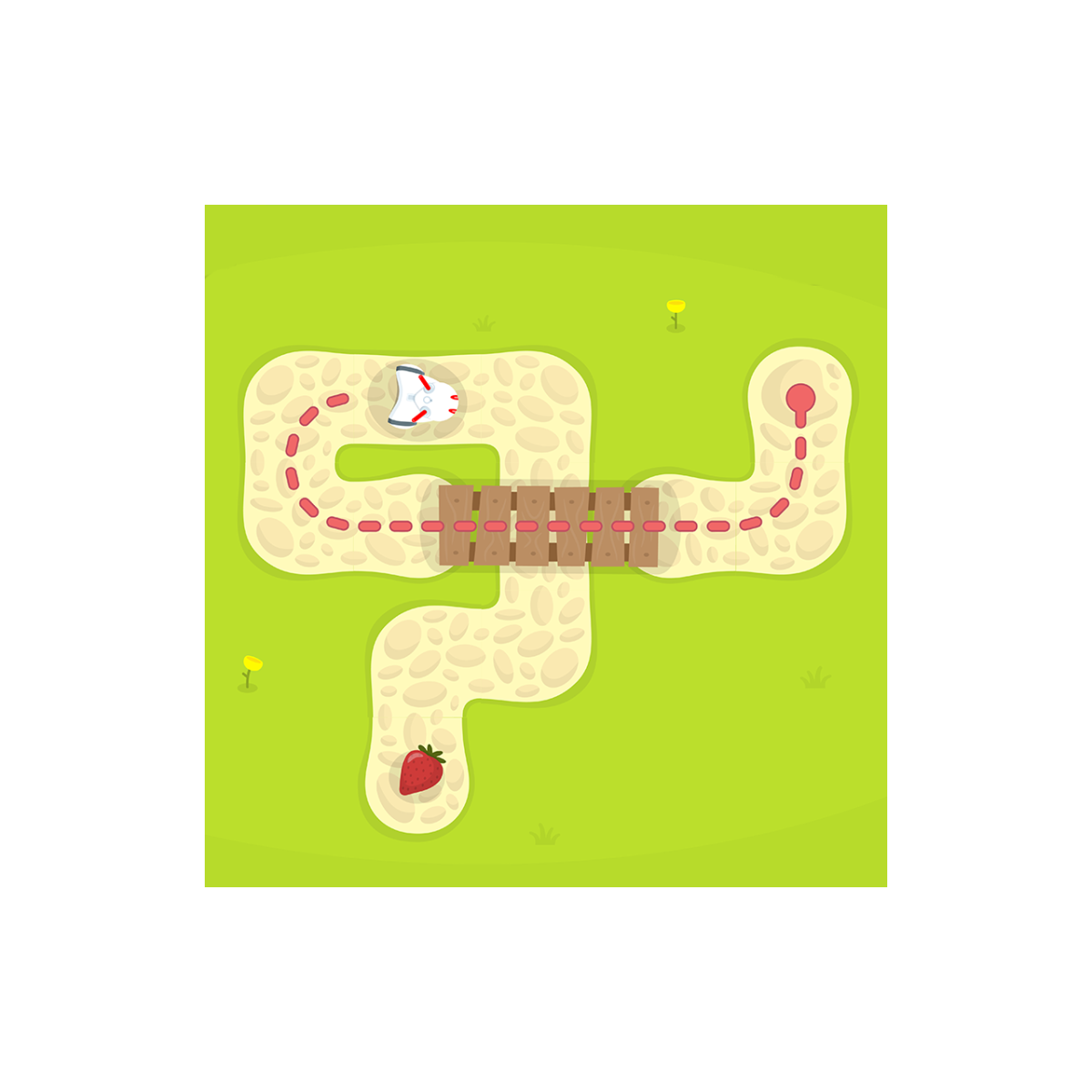 Pomóż robotowi pozbierać owoce z koszyka, zanim rozpoczną piknik. Dzieci uczą się sekwencjonowania działań i planowania ruchu.