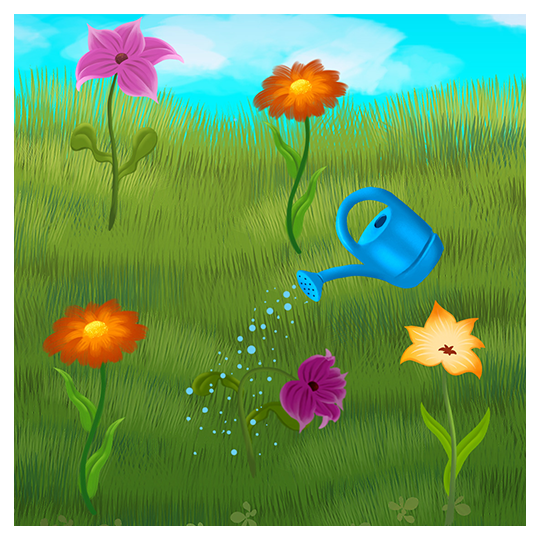 Kwiaty w ogrodzie – dbanie o kwiaty, rozwijające spostrzegawczość i odpowiedzialność.